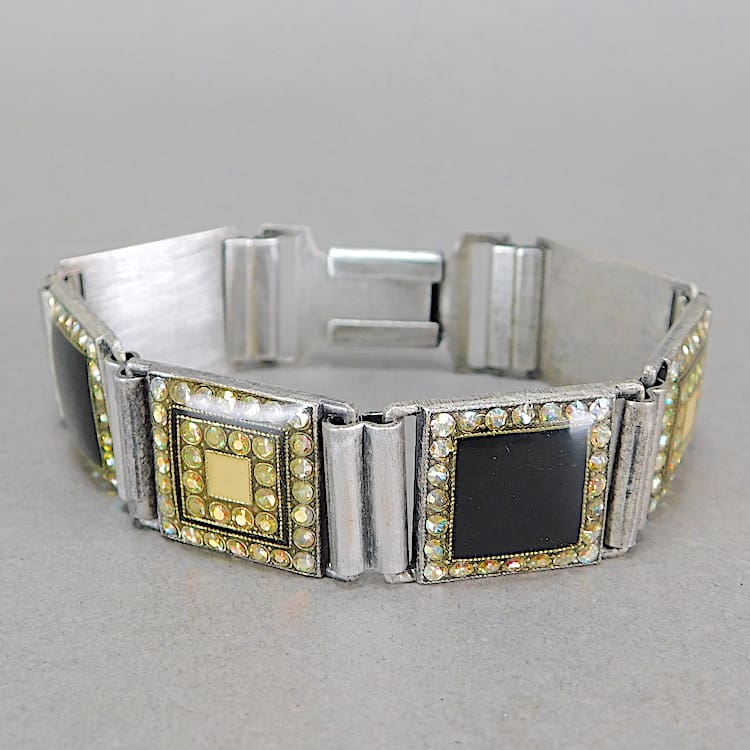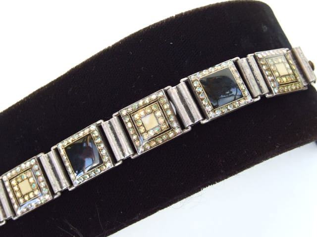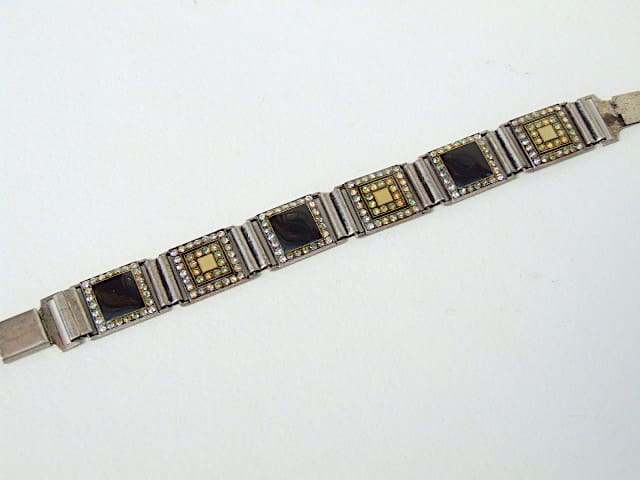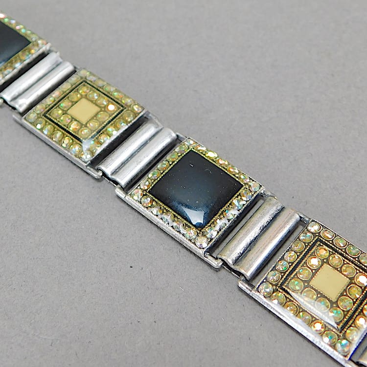 Enamel and rhinestone bracelet fitted with a push in clasp.
