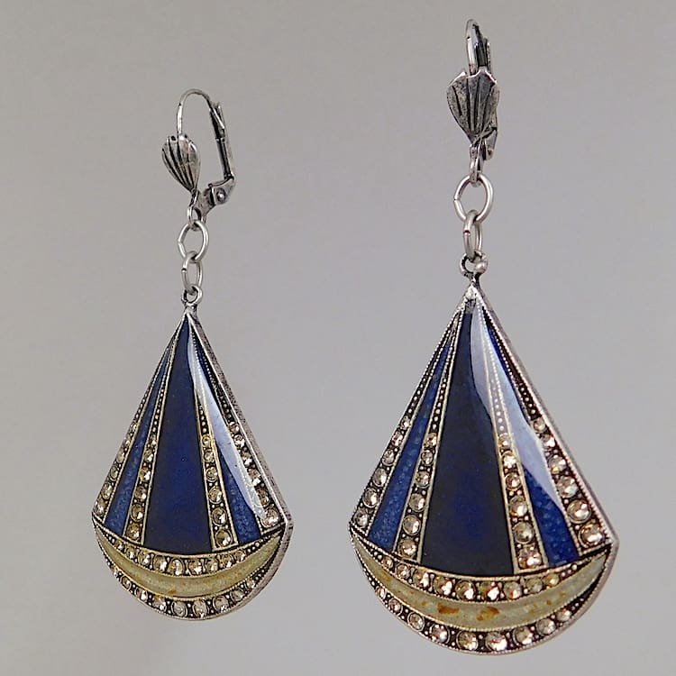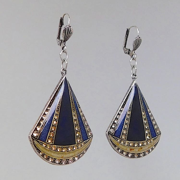 French enamel and diamonte earrings for pierced ears, fitted with silver safety clasp.