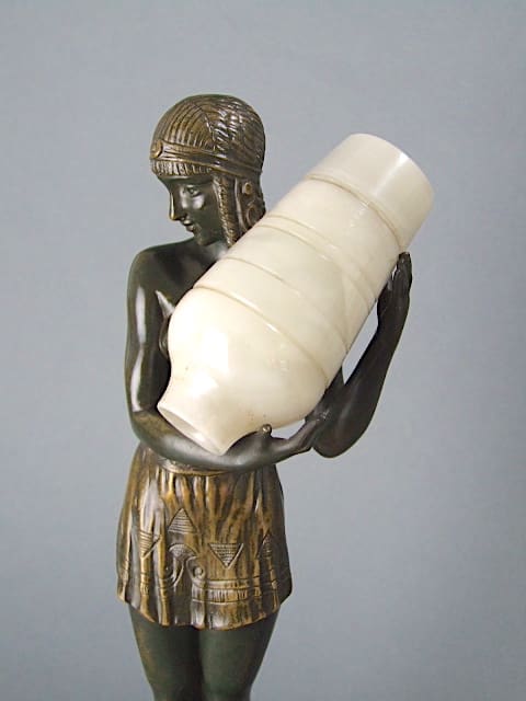 French bronze Egyptian themed Water Carrier lamp – a signed piece by Pierre Le Faguays, signed to marble base. I believe produced by the Etling Foundry, Paris.