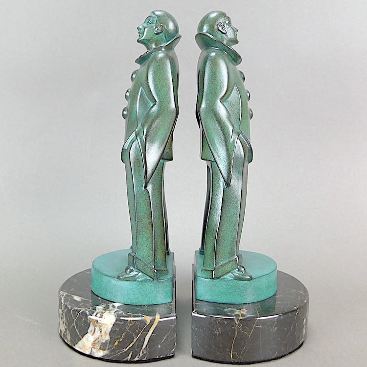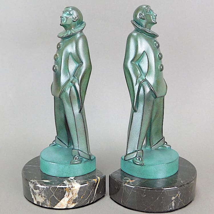 French art deco green patinated art metal bookends.