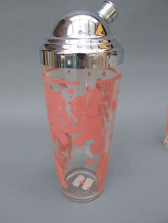 This glass martini set was produced in the 1940’s by Hackney I believe.