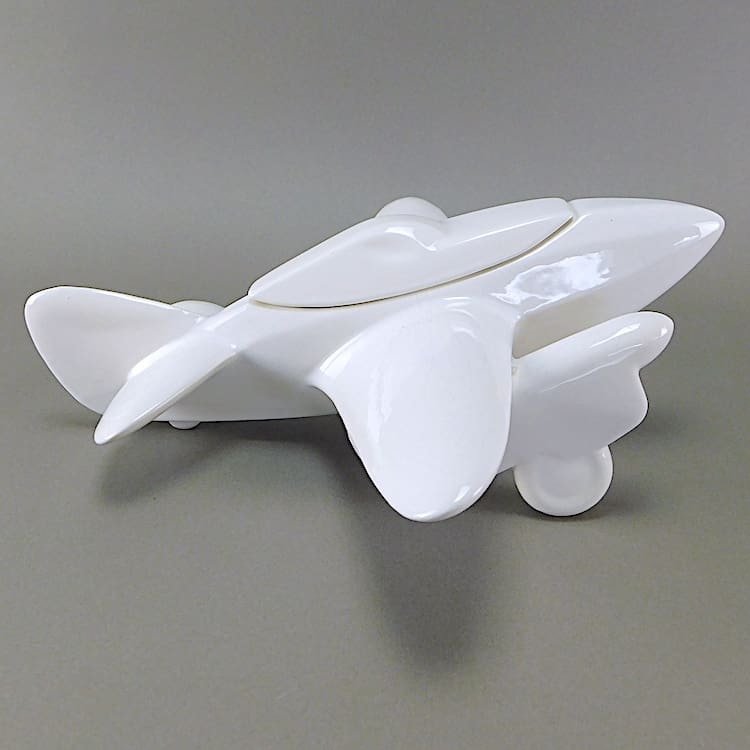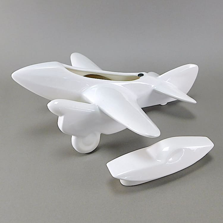 French art deco style craquelier ceramic plane Jar with removable cockpit.