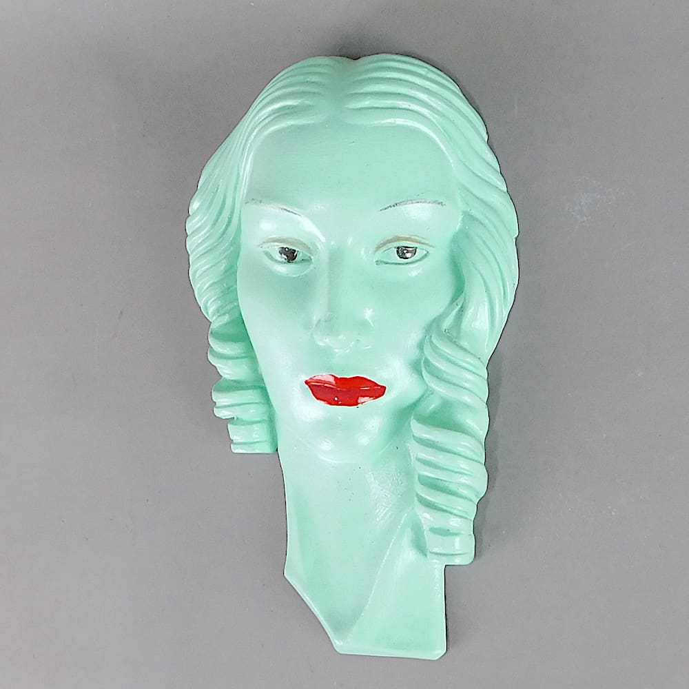 This appears to be a hand painted copy of a plaster wall mask (PLQ521 – shown in pictures) made in the early 1930s by the Leonardene company and designed by Leonardi.