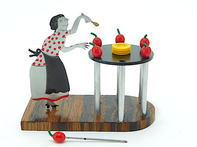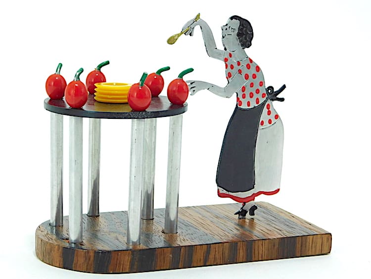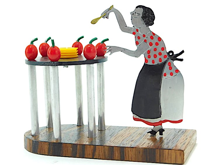 French unsigned Sudre cocktail sticks set, made by the Cado company. Base is made of macassar wood.