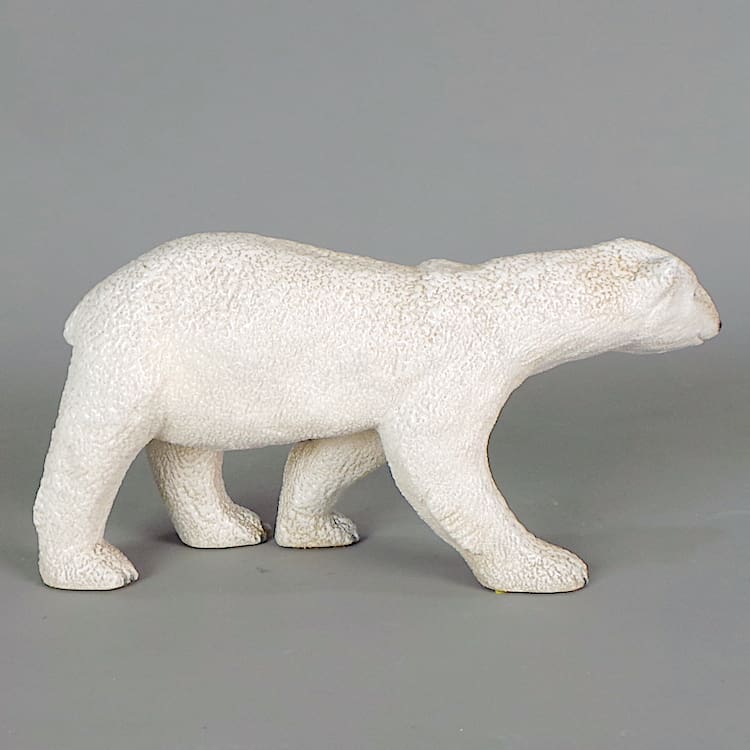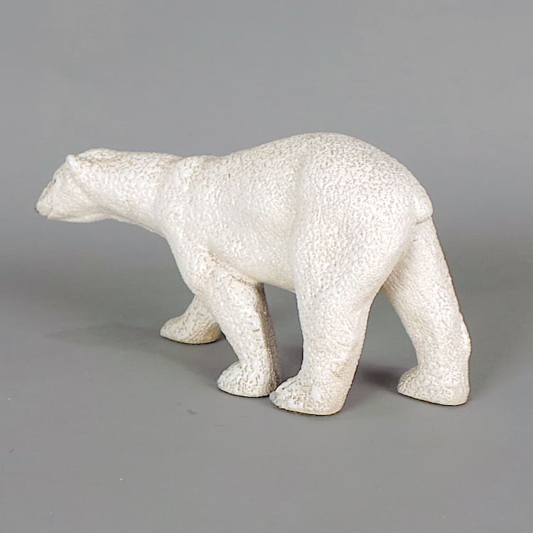 English Ceramic wax glazed art deco polar bear statue.