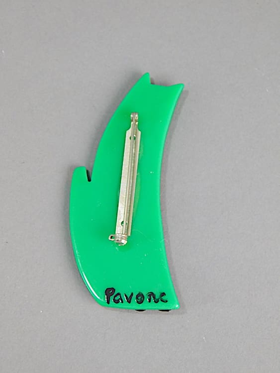 French vintage galalith hand painted, polished and signed by Marie-Christine Pavone.