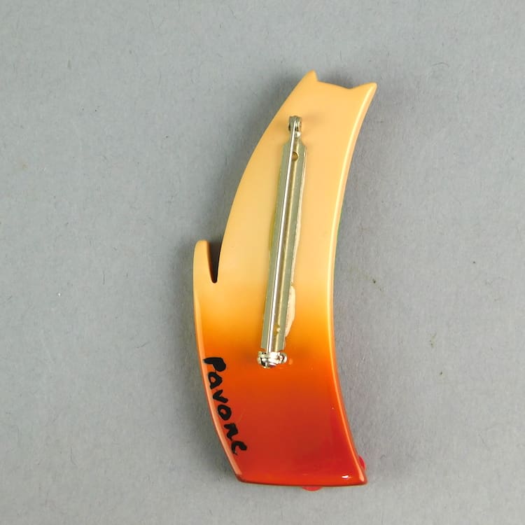French vintage galalith hand painted, polished and signed by Marie-Christine Pavone.