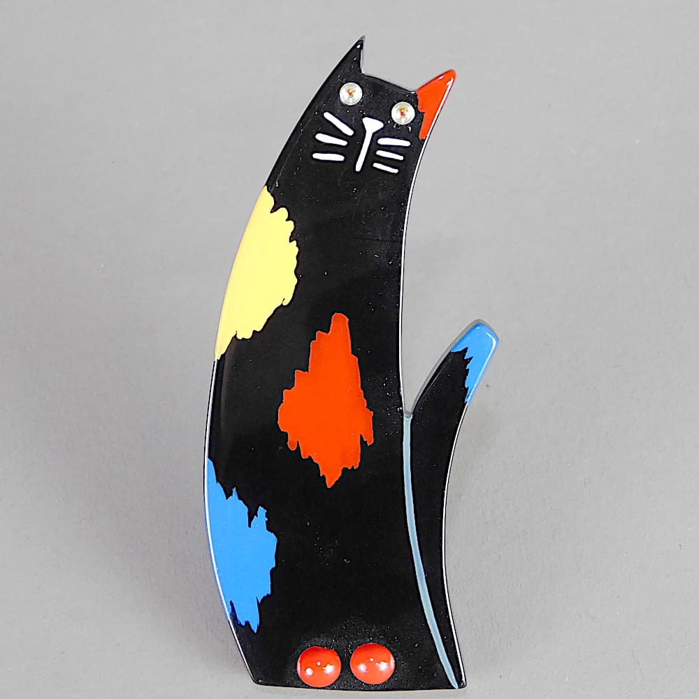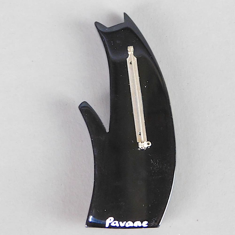 French black vintage galalith hand painted, polished and signed by Marie-Christine Pavone.
