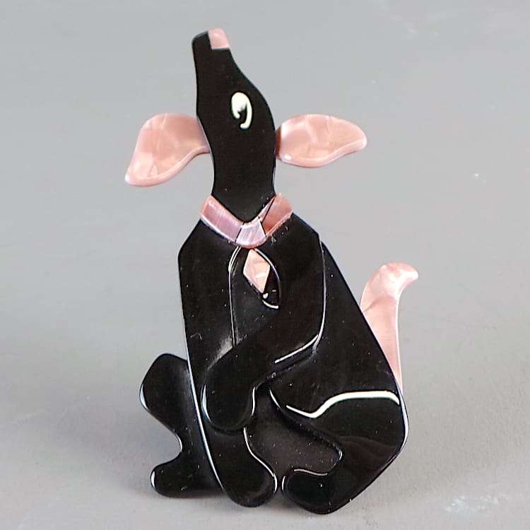 This is Pouf, a dog brooch by Lea Stein. Named after one of her dogs.