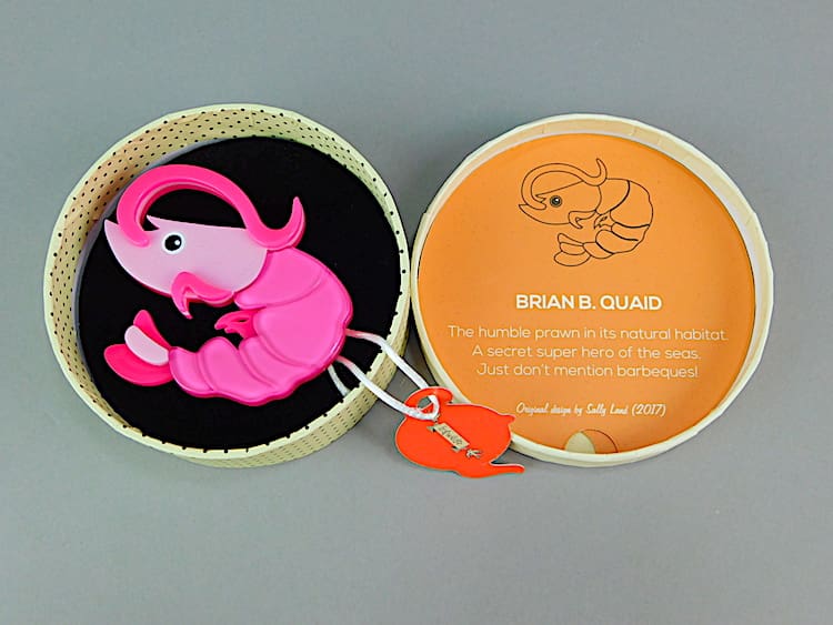 Vintage Erstwilder brooch Brian B. Quaid prawn. Fitted with a roll safety clasp and signed to the back. Comes with its original box and card.