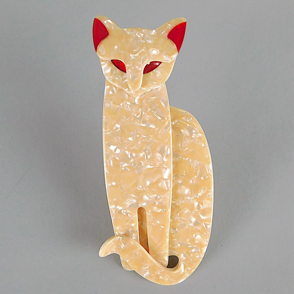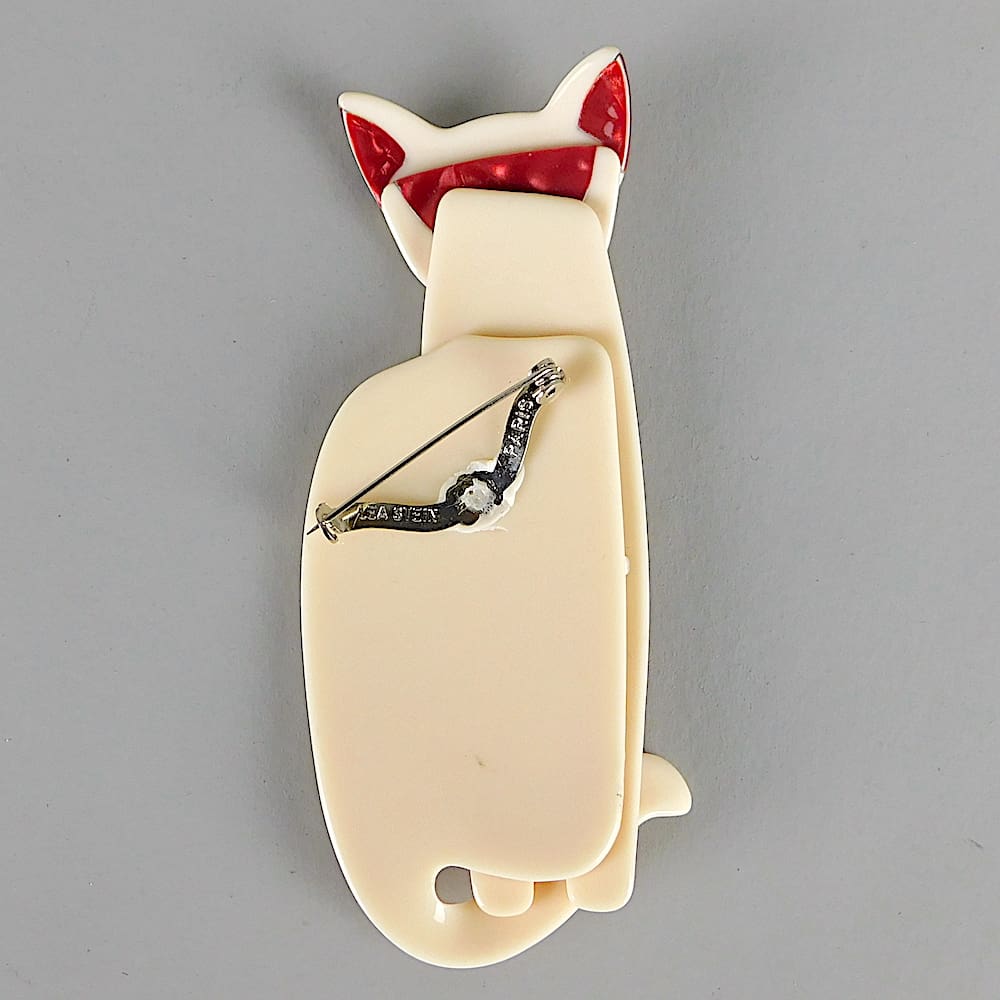 Large cat brooch by Lea Stein called Quarrelsome Cat.