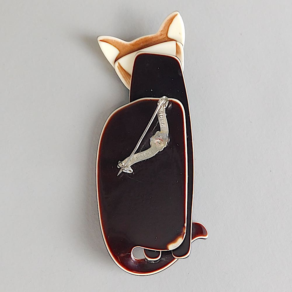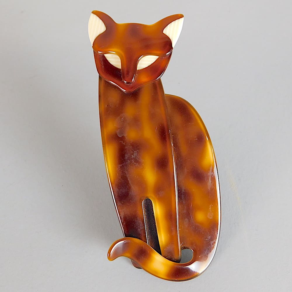 Large cat brooch by Lea Stein called Quarrelsome Cat.