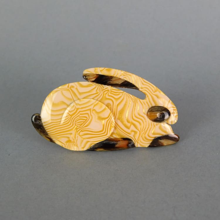First edition Rabbit brooch. Fitted with the signed V safety clasp. Similar can be viewed in the Lea Stein book p64.