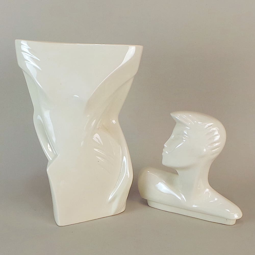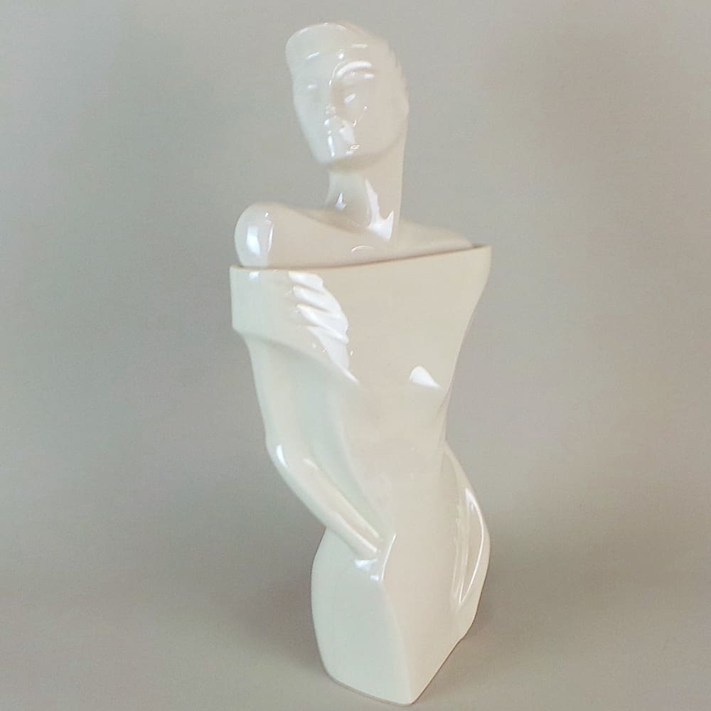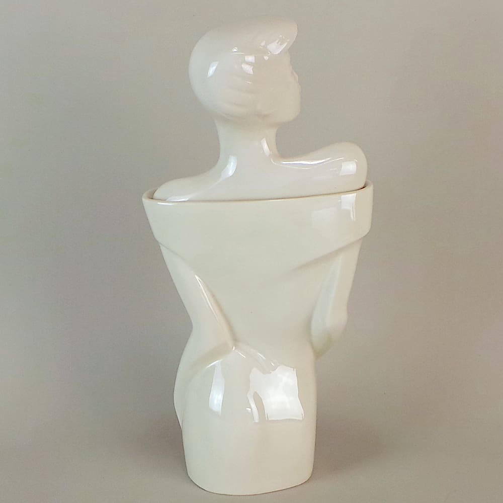 White high glaze art deco style Rachel lidded vase.