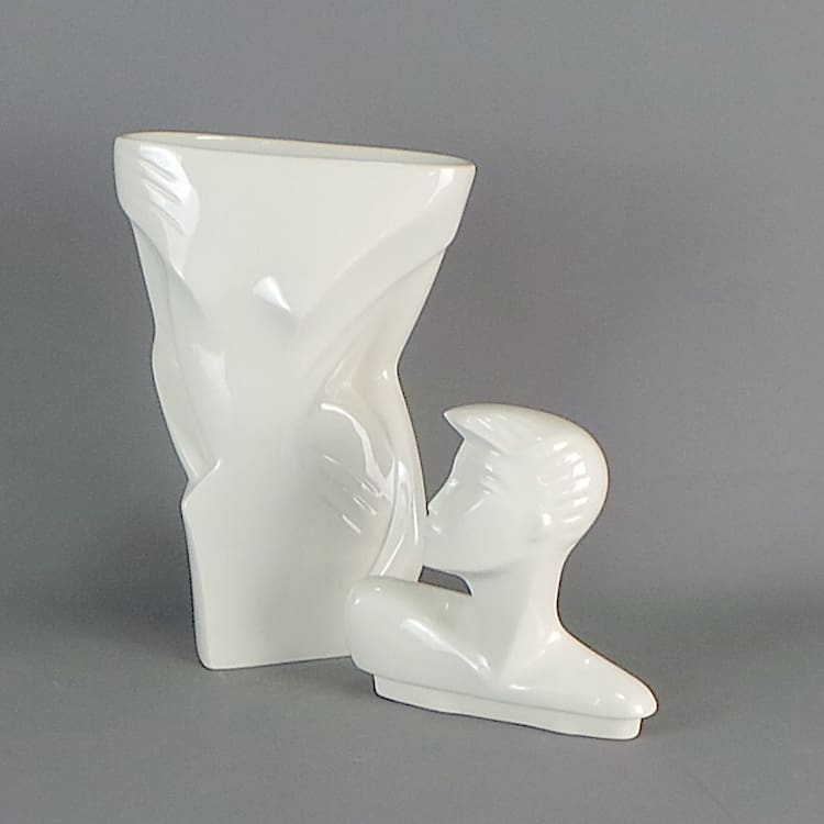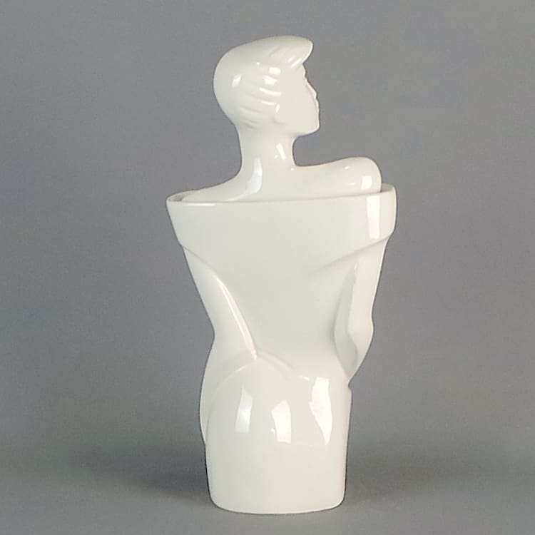 White high glaze art deco style Rachel lidded vase.