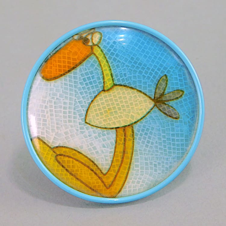 These early Lea Stein brooches were modelled on the L’ile aux infants TV series characters and were made in a very limited number in 1975.