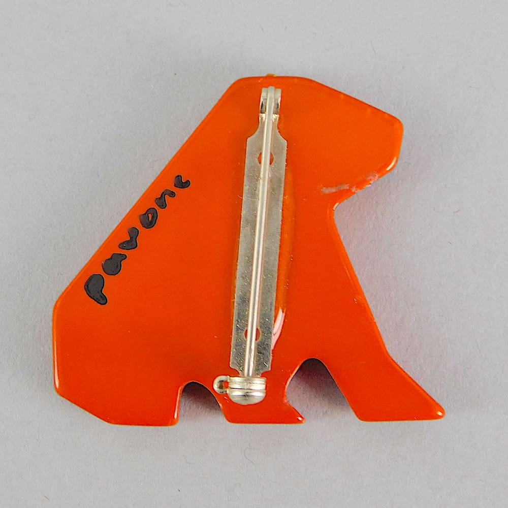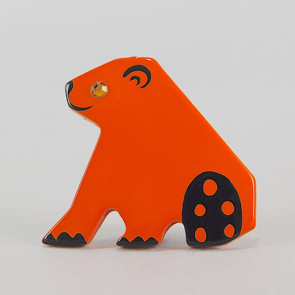 French vintage galalith hand painted bear brooch.