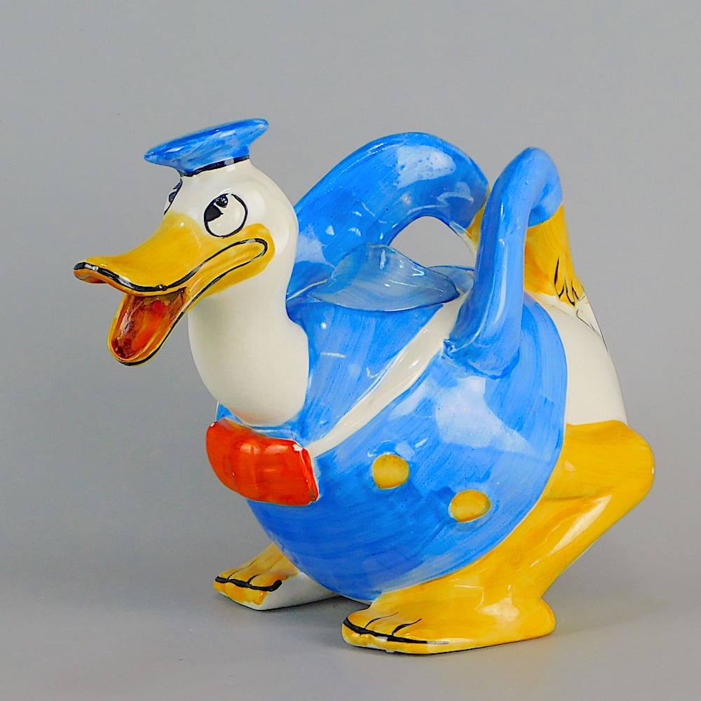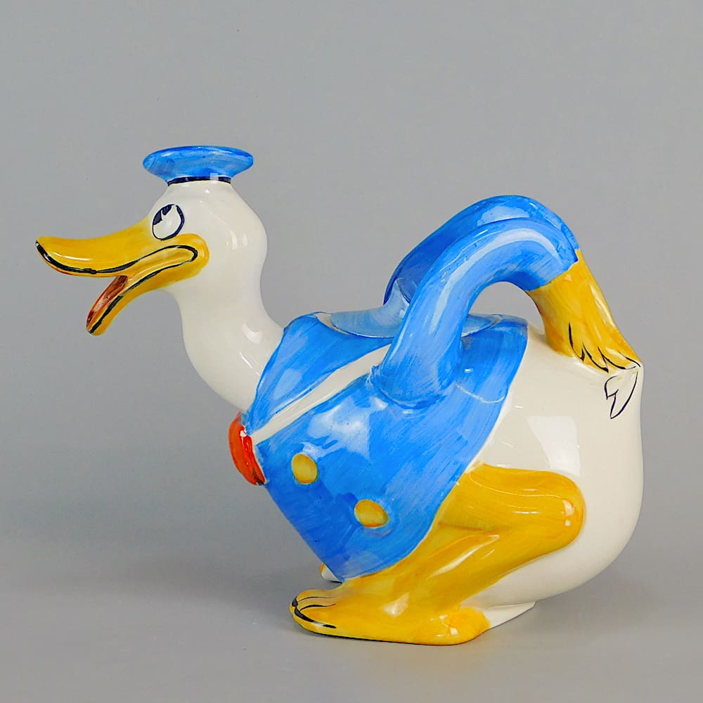 English hand painted Art Deco ceramic teapot modelled as Donald Duck.