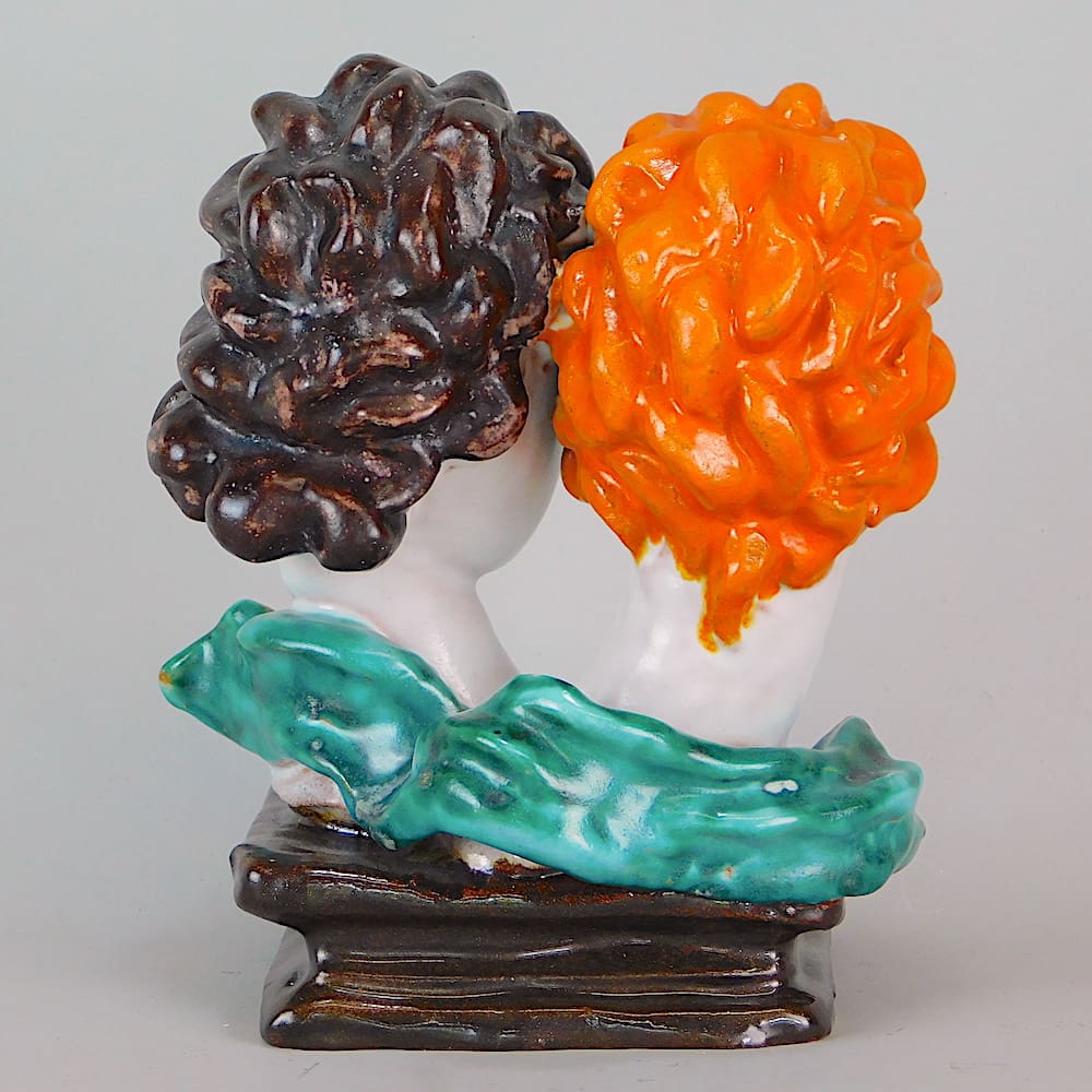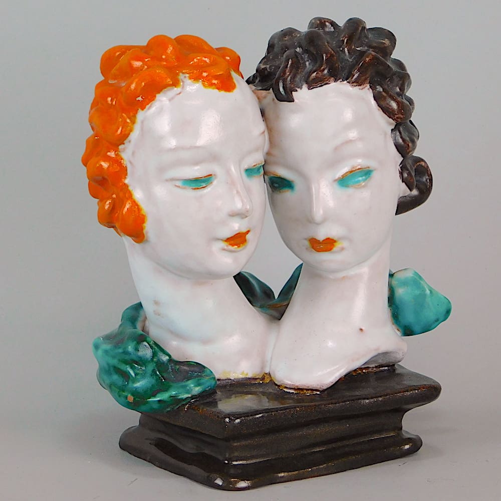 Rare double art deco hand painted terracotta bust by Goldscheider.