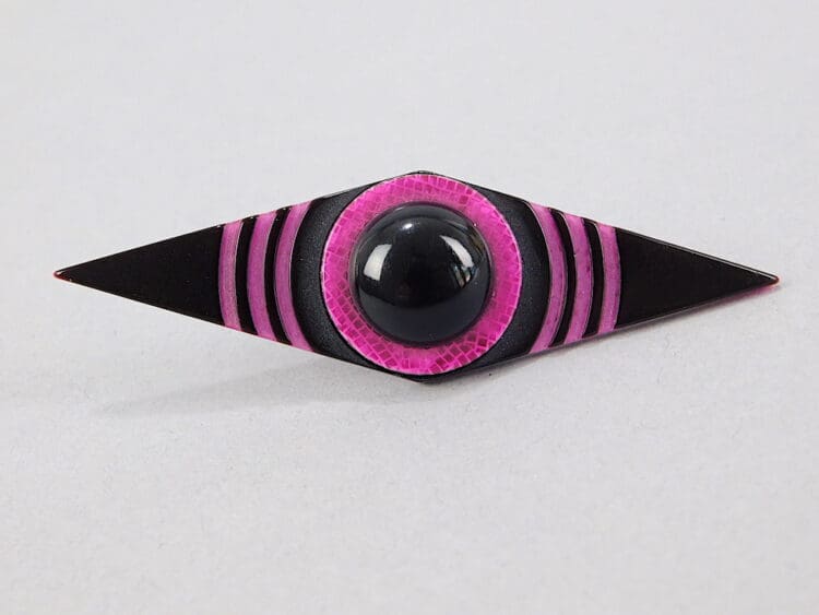 Rare early 1st edition Lea Stein geometric diamond brooch. Signed to the V safety clasp.