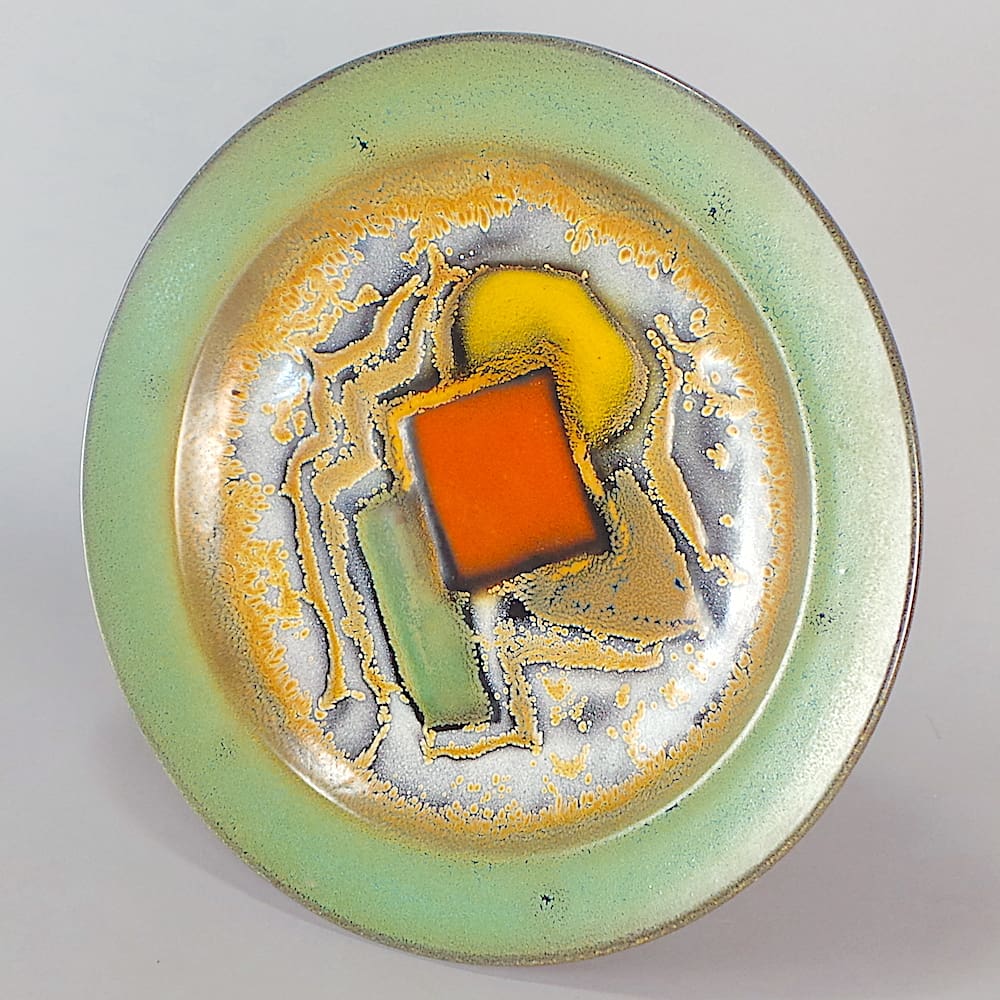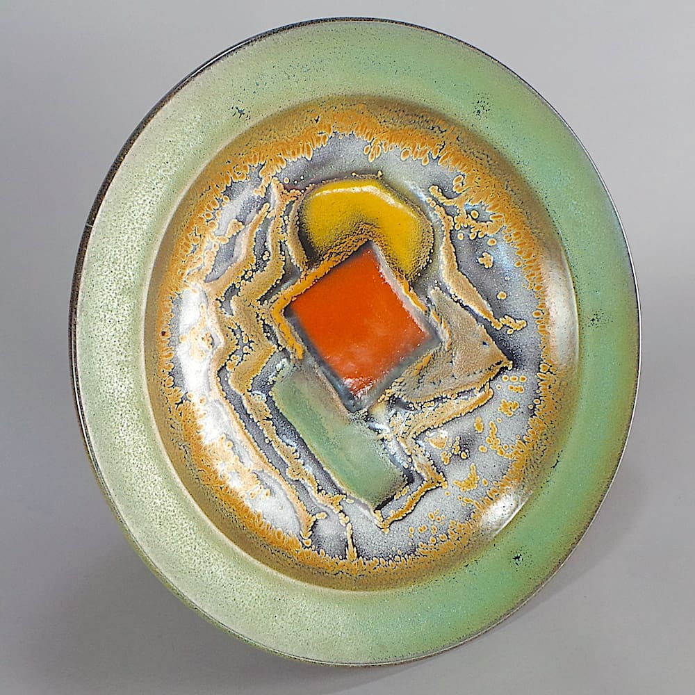 Rare large abstract geometric hand painted Art Deco wall charger plate.
