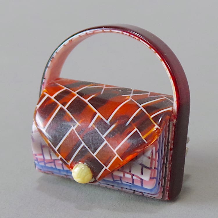 Early and now rare hand bag brooch by Lea Stein.