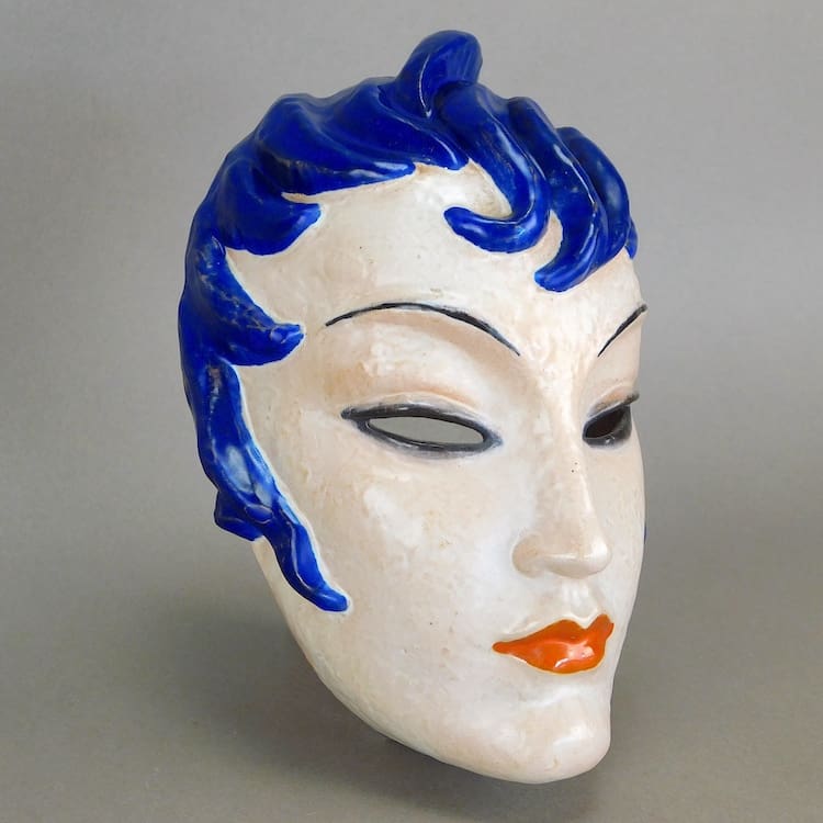 Extremely rare Austrian terracotta wall mask; designed by Rudolph Podany for Keramos in the early 1930’s.