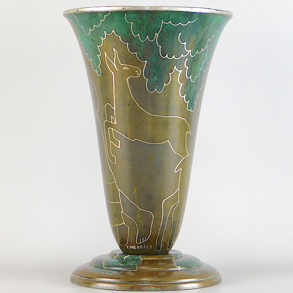 A large French metal dinanderie vase by Paul Louis Mergier (1891 – 1986).