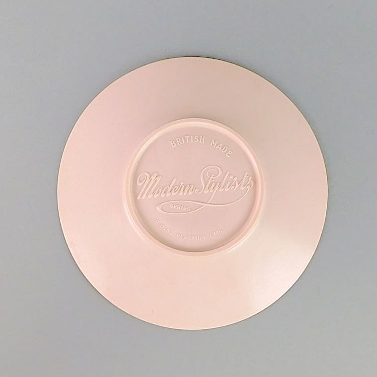 Very rare set of pink phenolic dish plates made in the late 1930s/1940s by UDA plastics and signed UDA to the back and Modern Stylists, made in England.