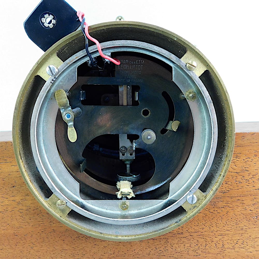 I bought this clock from the Great Grandson of the man who bought it new in the 1920/30s. His Grandfather got it from a watchmaker who was working in the ATO Factory. According to what the seller remembers – a rich American did the general design asking for a shipwheel clock and Leon Hatot did the exact dimensioning of the cast bronze case. The wood base was done the way the American wanted it probably in France. It seems the order was for 10 clocks and the American took 8 and left Leon Hatot with 2 of them and this is this is one of the clocks left in France. The other 8 clocks were I believe shipped to America. So this is a very rare clock and 1 of ten made.