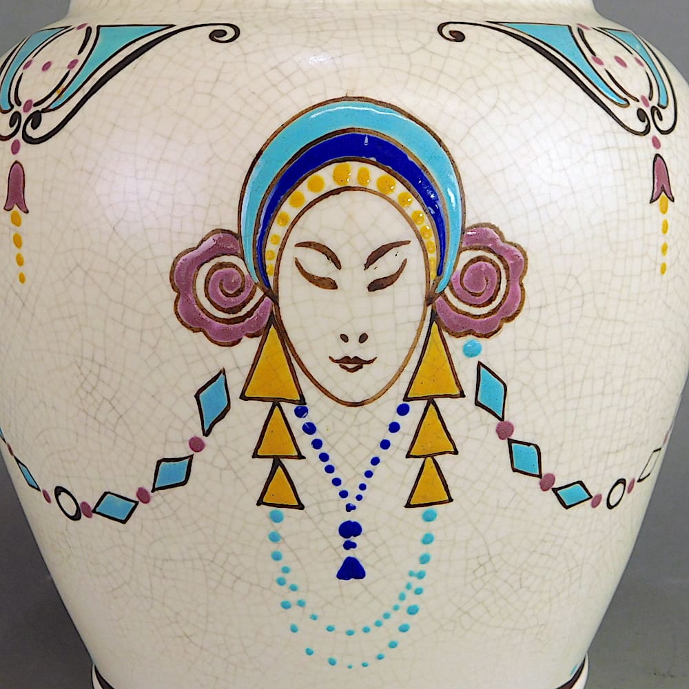 Hand painted art deco oriental flappers repeated 4 times around the outside with other hand painted detail.