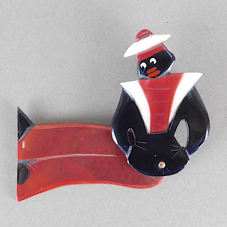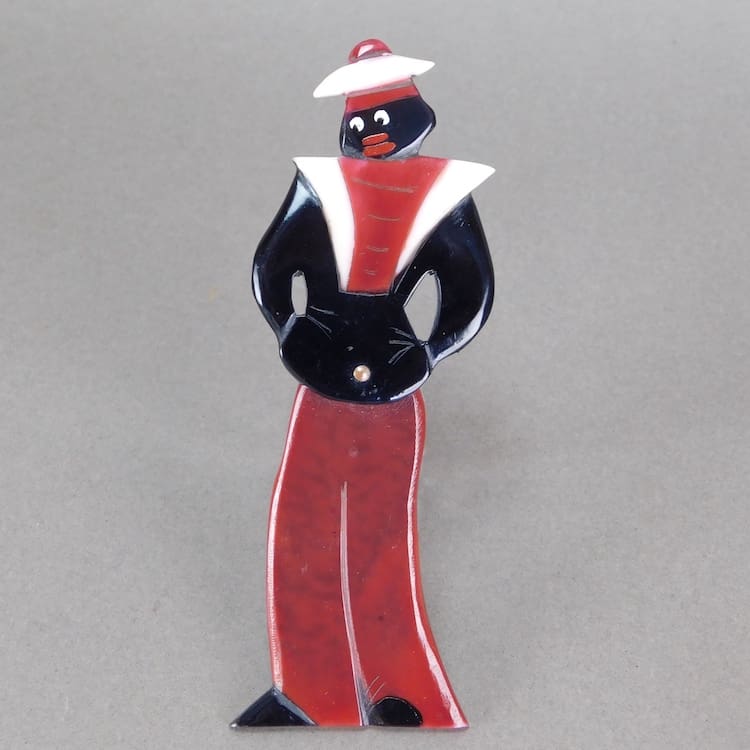 French very rare articulated phenolic sailor brooch – he pivots at the waist.