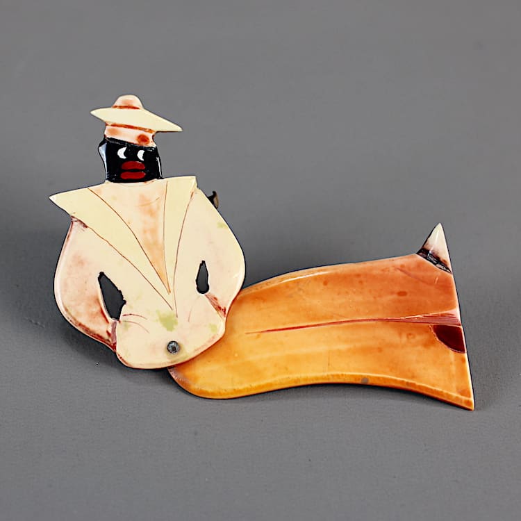 French very rare articulated phenolic sailor brooch – he pivots at the waist.