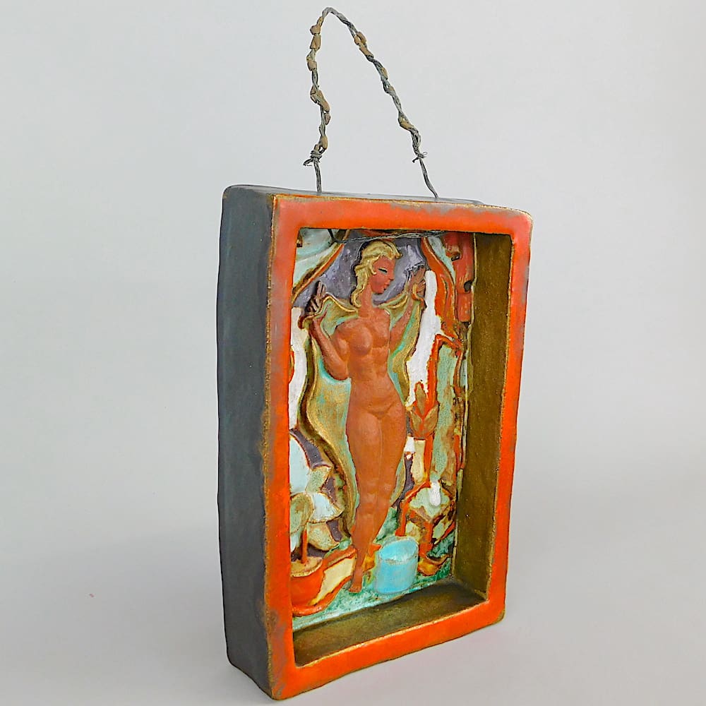 Extremely rare terracotta nude wall plaque made during the 1930s and stamped to the reverse Goebel-bieber, made in Germany.