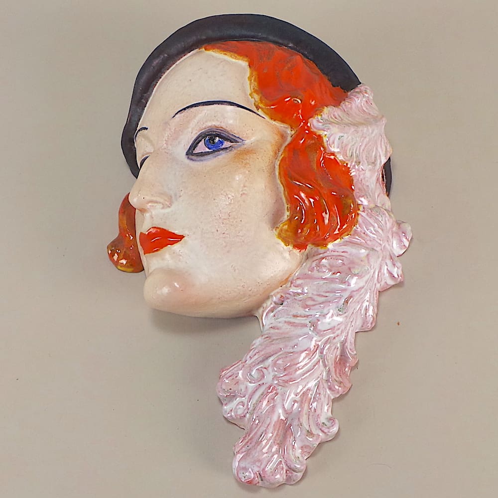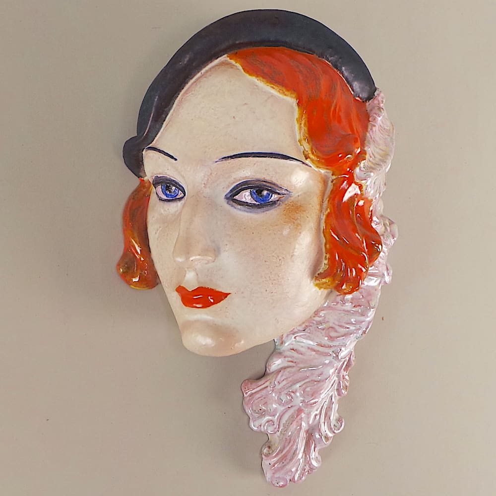 Rare large hand painted art deco terracotta wall mask.