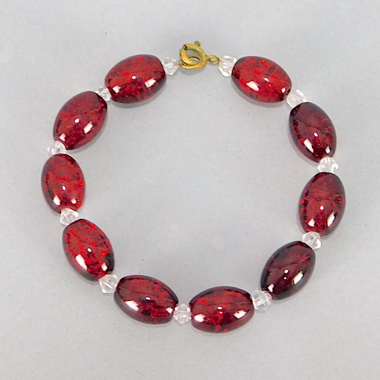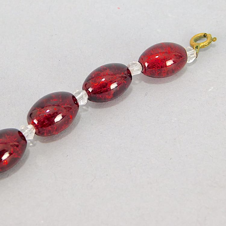 Vintage red glass bead bracelet.