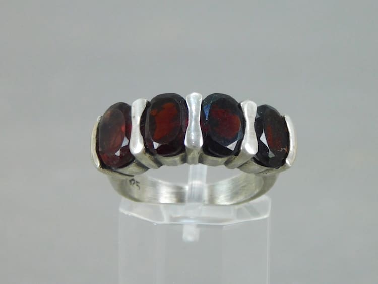 Contemporary silver and red faceted glass ring.