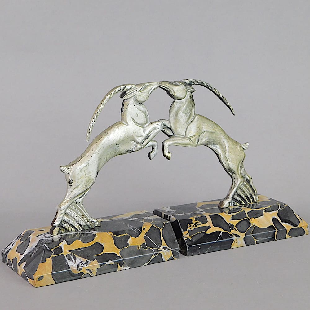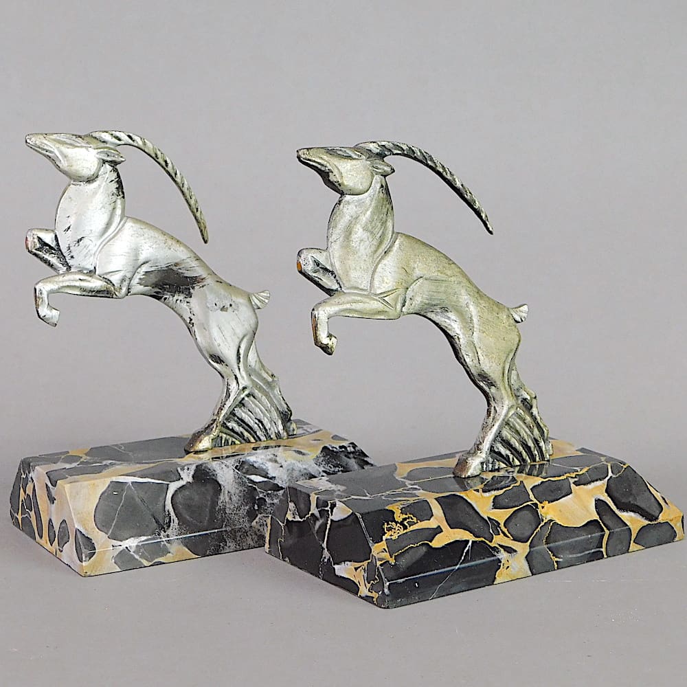Stylised art deco 2 dimensional silvered bronze deer bookends.