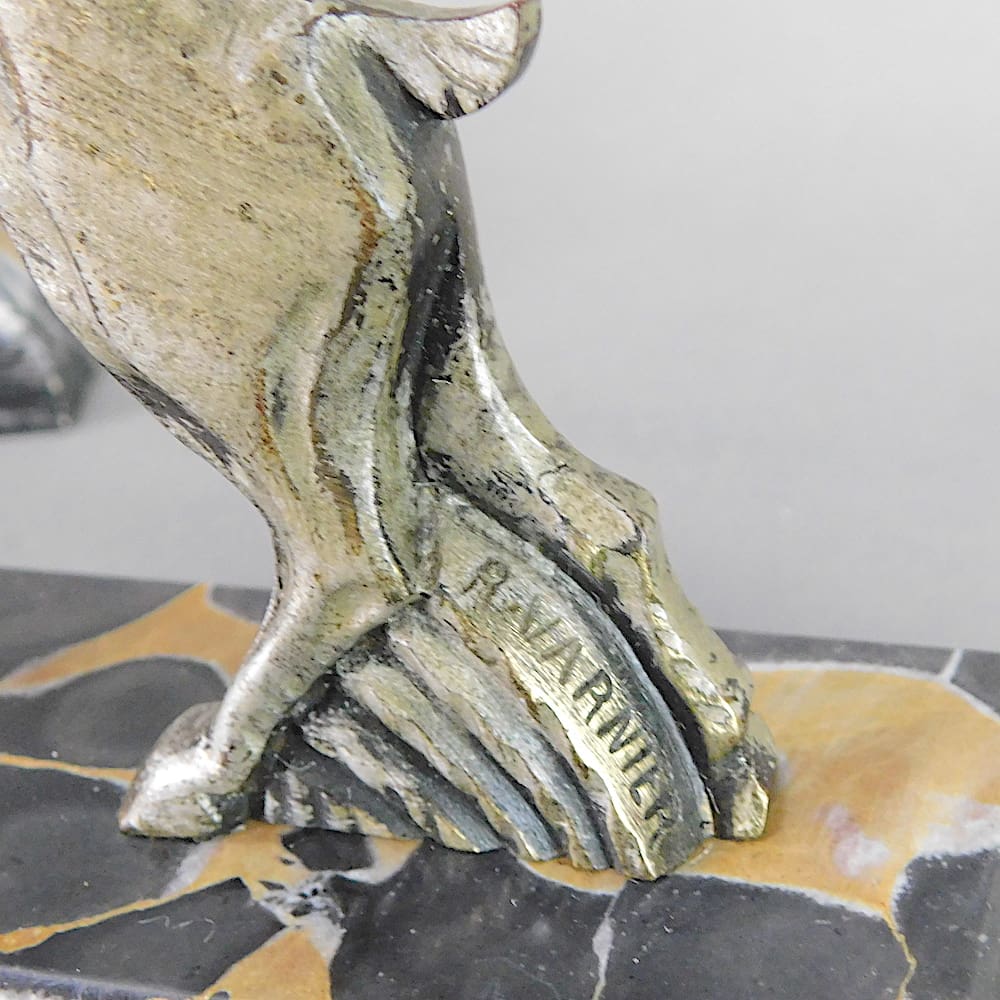 Both signed to the bronze R. Varnier and mounted on portorro marble bases.