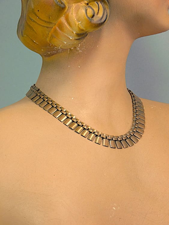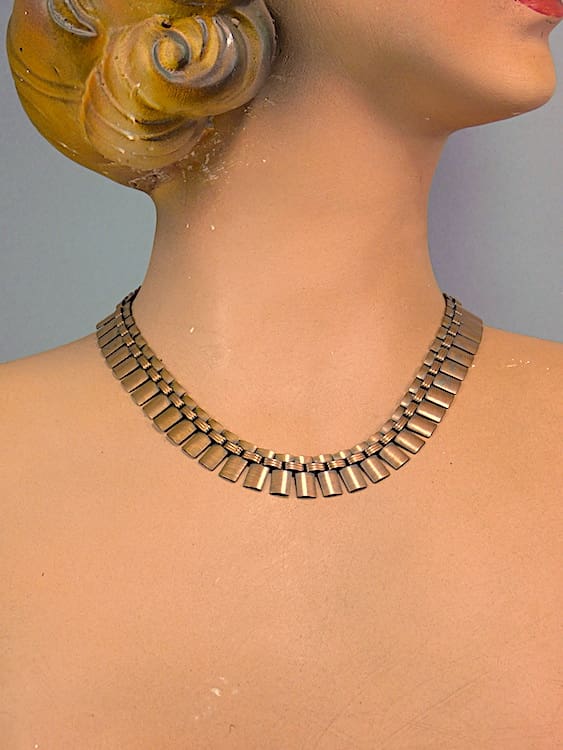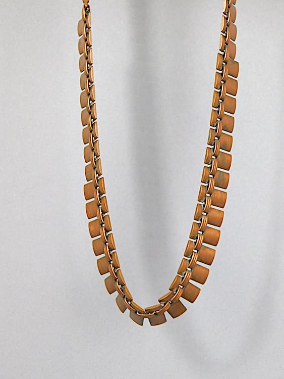 Polished copper linked fan necklace. Probably made by Renoir.