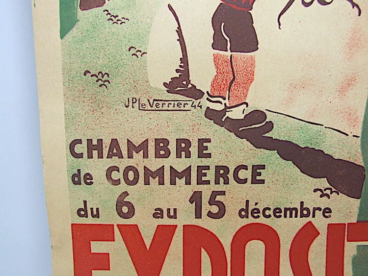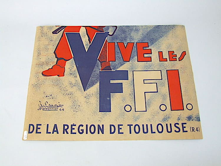 Original humorist resistance poster by Jean Paul Le Verrier. This is such a rare find, the Le Verrier family are famous for the production of art deco statues. It has come from the archives of the Le Verrier atelier and family. Part of a collection of items recently purchased by me. Signed J.P. Le Verrier 1944 and made for the Toulouse Resistance movement. One of these same posters is on display in the Toulouse Museum. It has been printed on the back of another previous resistance poster. I have several of the resistance posters by Jean-Paul LV.