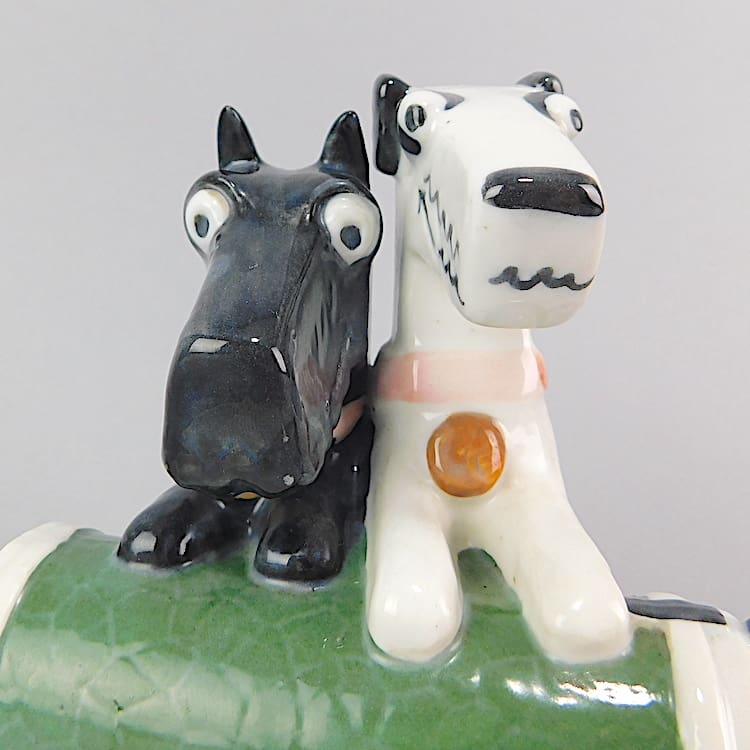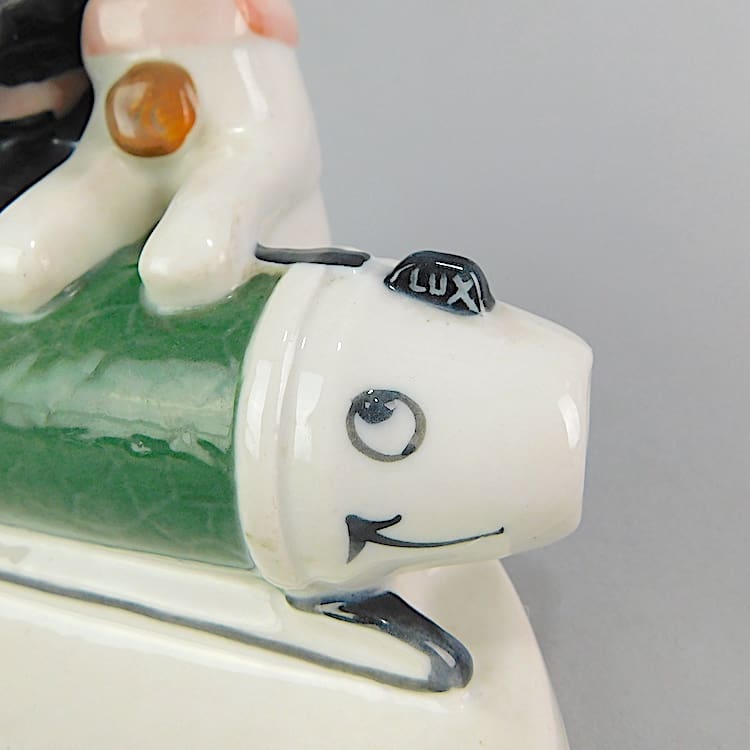 Rare French Ric and Rac terriers ashtray. An advertising ashtray for Lux hoovers.