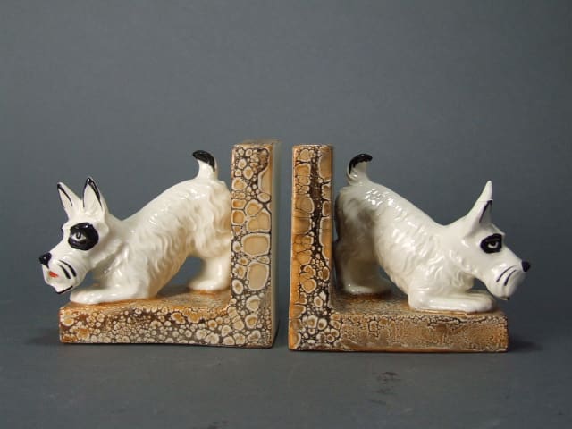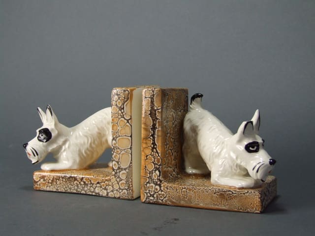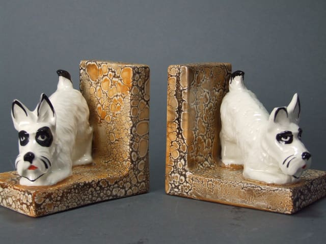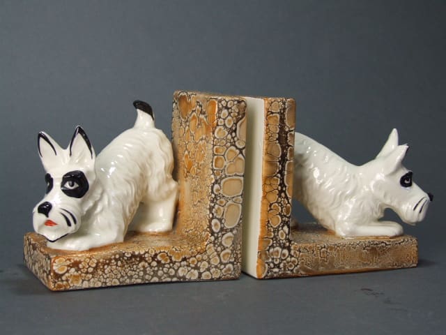 Czech ceramic bookends probably modelled on a Ric and Rac theme. They are hand painted and marked Czechoslovakia to the base and have a very unusual bubble glaze.