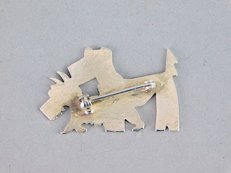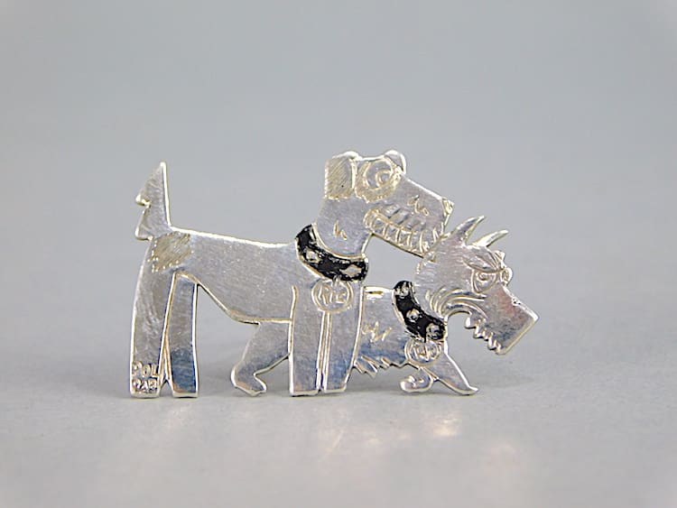 Art deco Ric and Rac the naughty terriers designed by and signed Pol Rab. Fitted with a roll safety clasp.