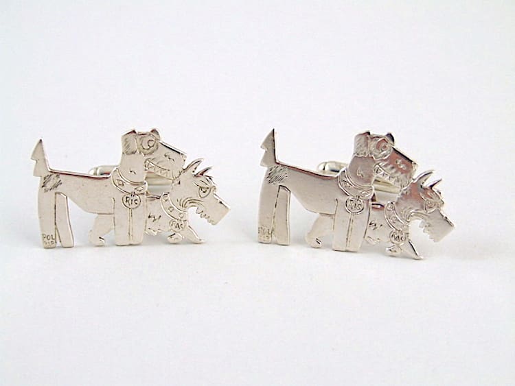 French Ric and Rac by Pol Rab cufflinks. French terrier dogs from the cartoon series of the 1920s.