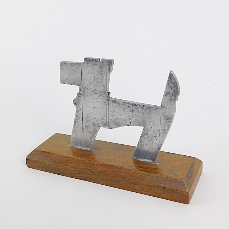 Designed by Pol Rab, one is made from an alloy and the other is phenolic. Each mounted on wooden bases. I am not sure what they were made for but as usual I cannot resist anything Ric and Rac.