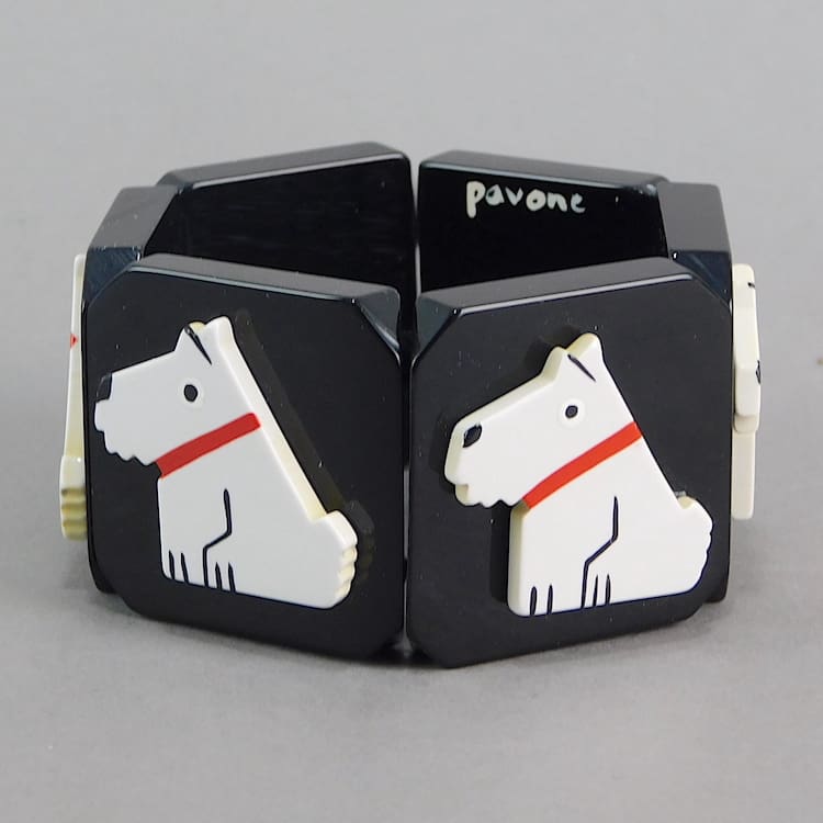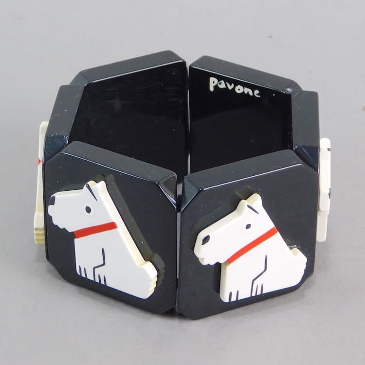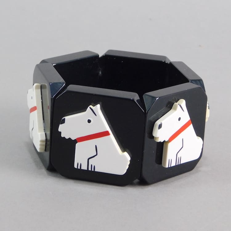 Chunky vintage galalith art deco Ric the naughty terrier by Pol Rab bracelet/ bangle.