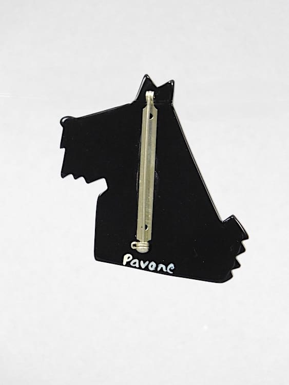 Smaller Ric the terrier hand painted art deco brooch made of vintage galalith in France.