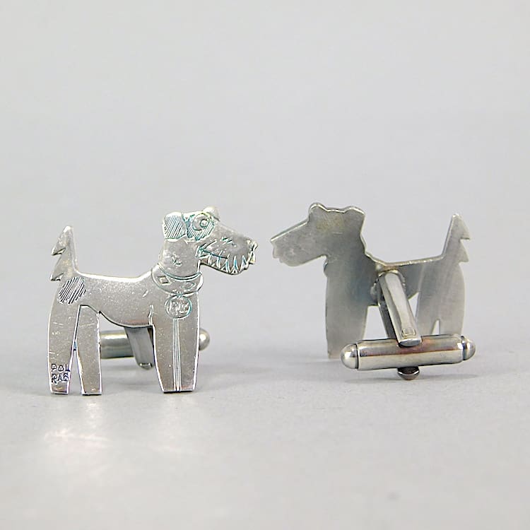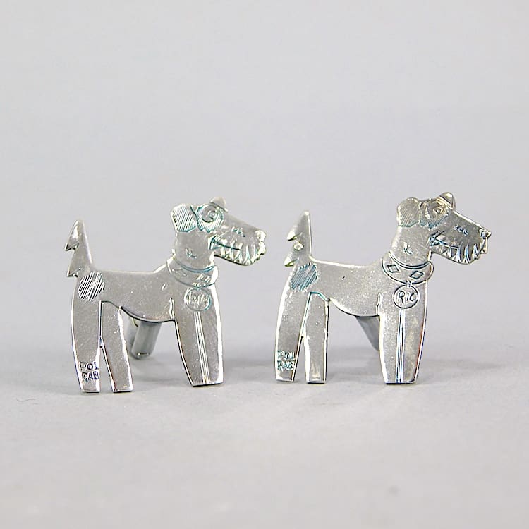 French silver plated Ric the Terrier cufflinks by Pol Rab with with twist fitting.