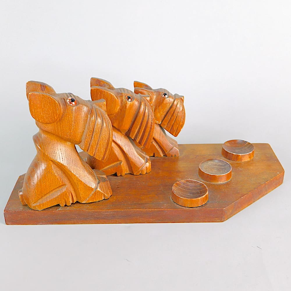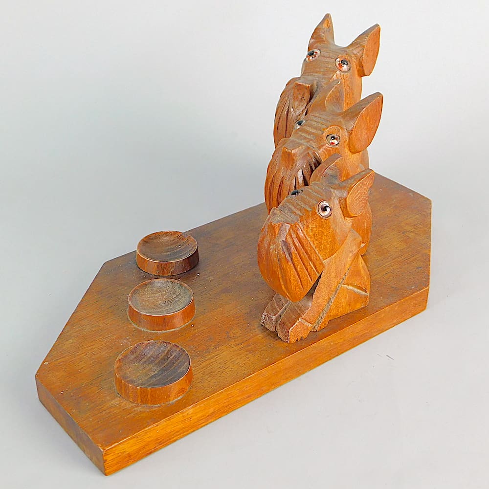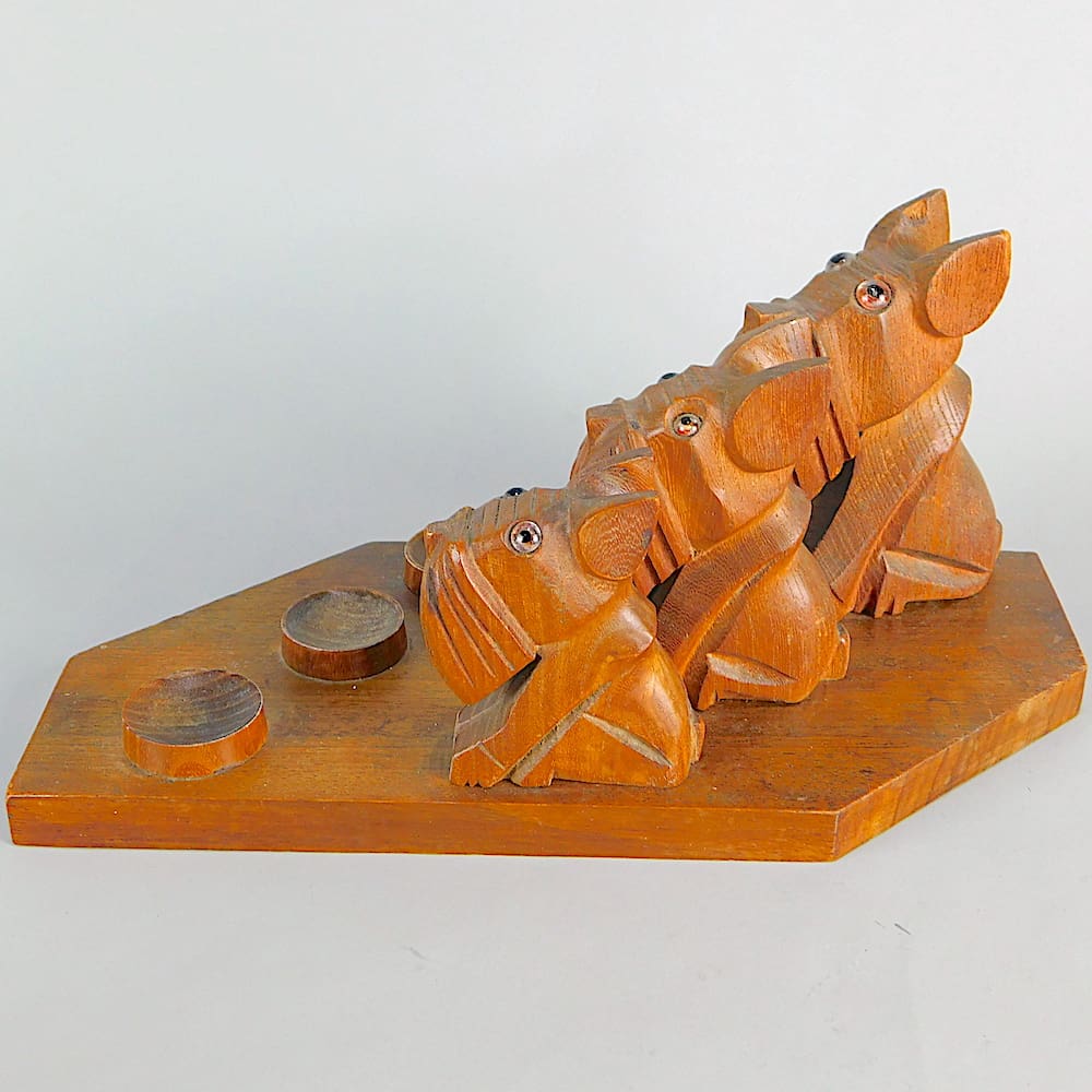 Large French Art Deco hand carved Ric (Pol Rab) wooden paperweight desk stand. Or possibly a smokers pipe stand